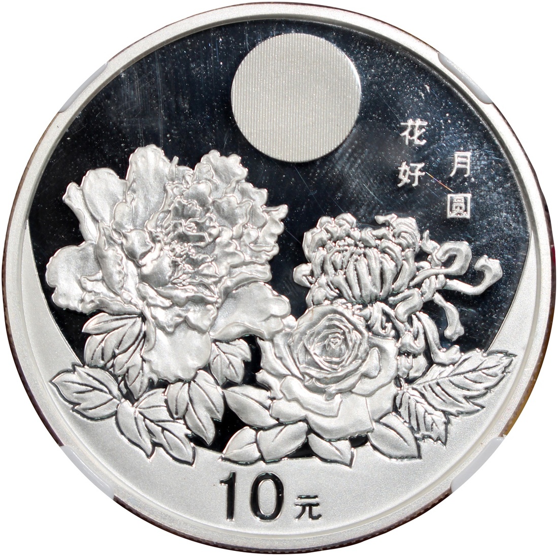 2001年中國中秋節精鑄銀幣10元,「花好月圓」,總含銀量1盎司,附原盒及證書,NGC PF 67 Ultra Cameo,#6342452-058