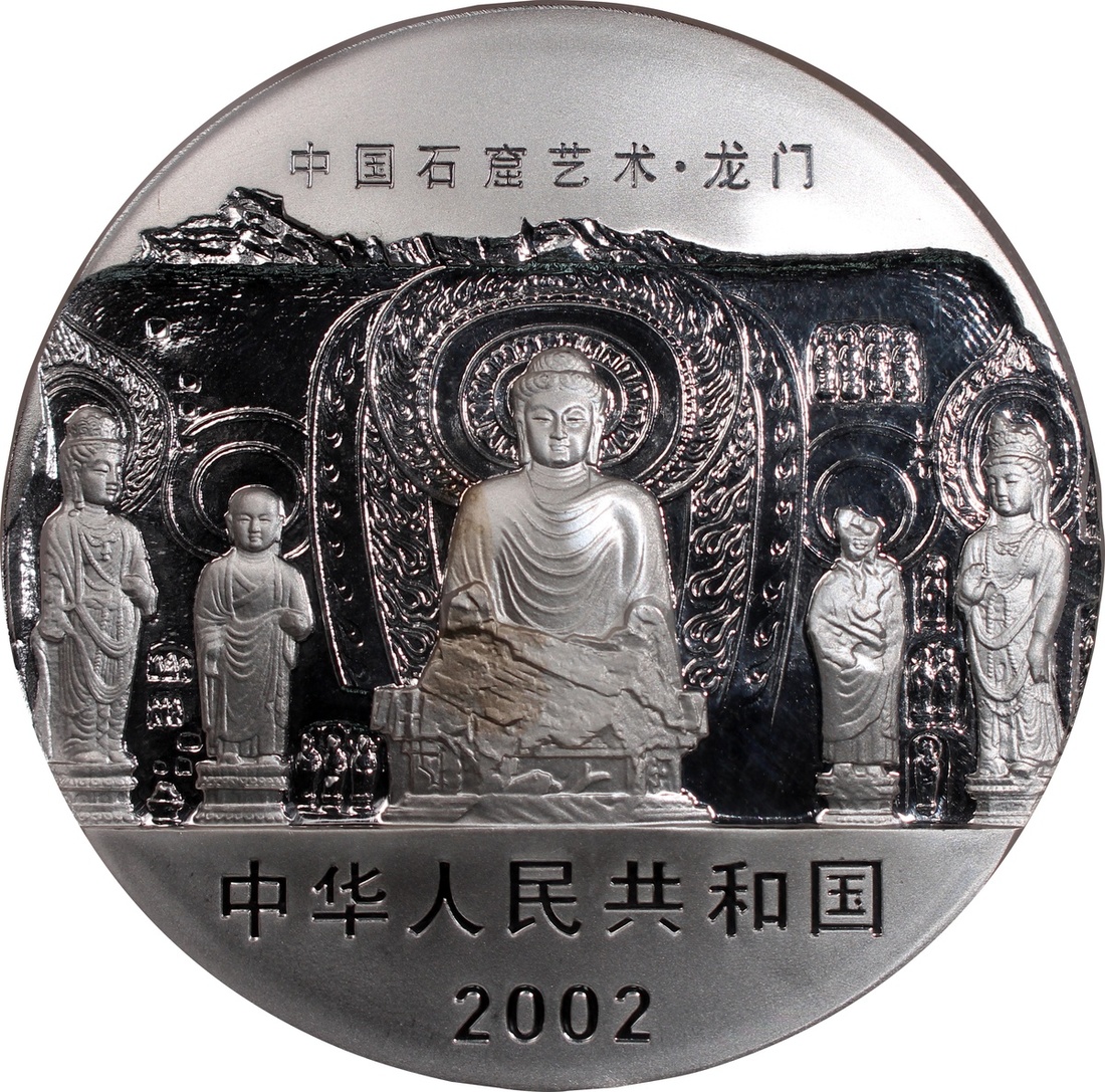 People's Republic Bank of China, 1x silver proof 50 Yuan, 2002, Longmen Grottoes, total ASW 5oz, with original box and certificate of issue, mintage of 8000 pieces,