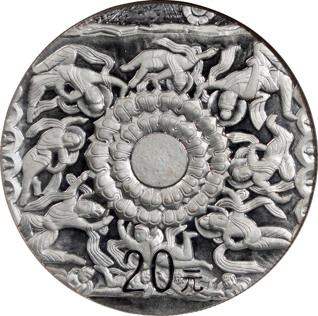 (x) People's Republic of China, silver proof piedfort 20 yuan, Yungang Grotto Art, 2010, 'Lotus Flowers and Flying Apsaras', ASW 2 oz,