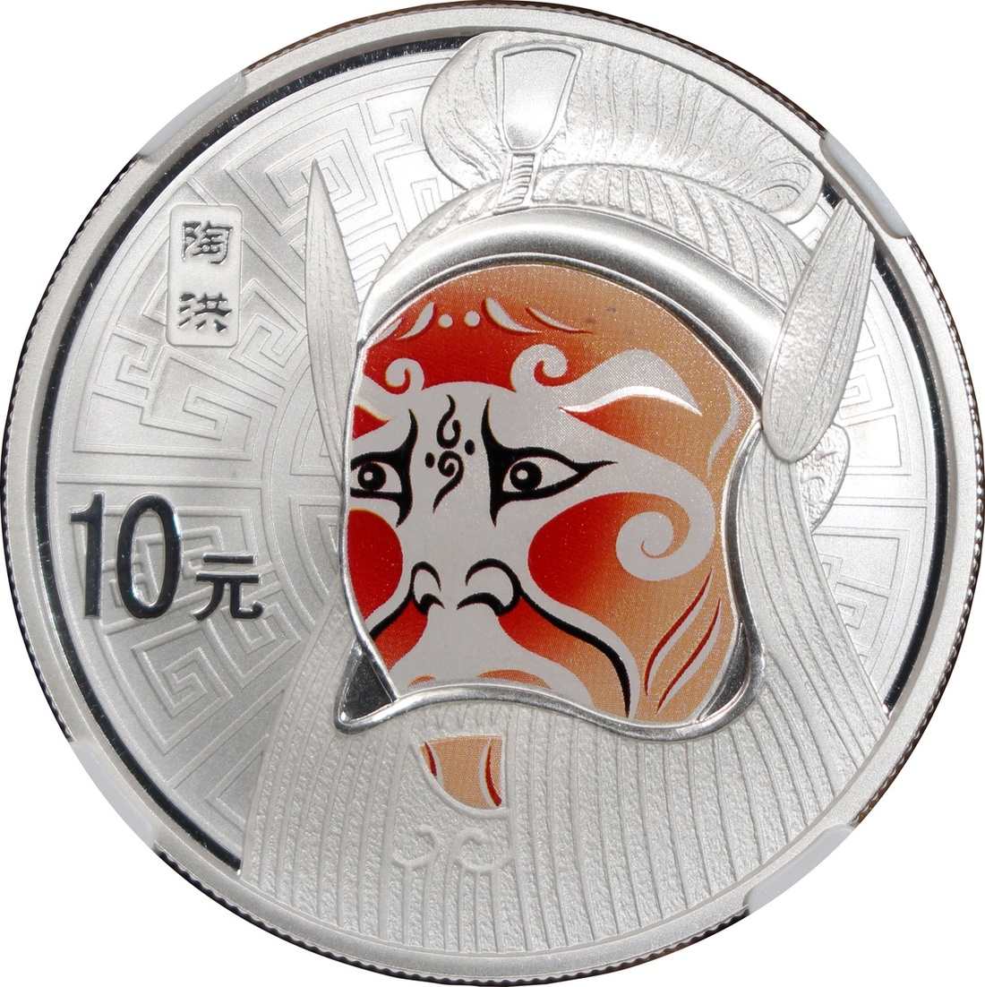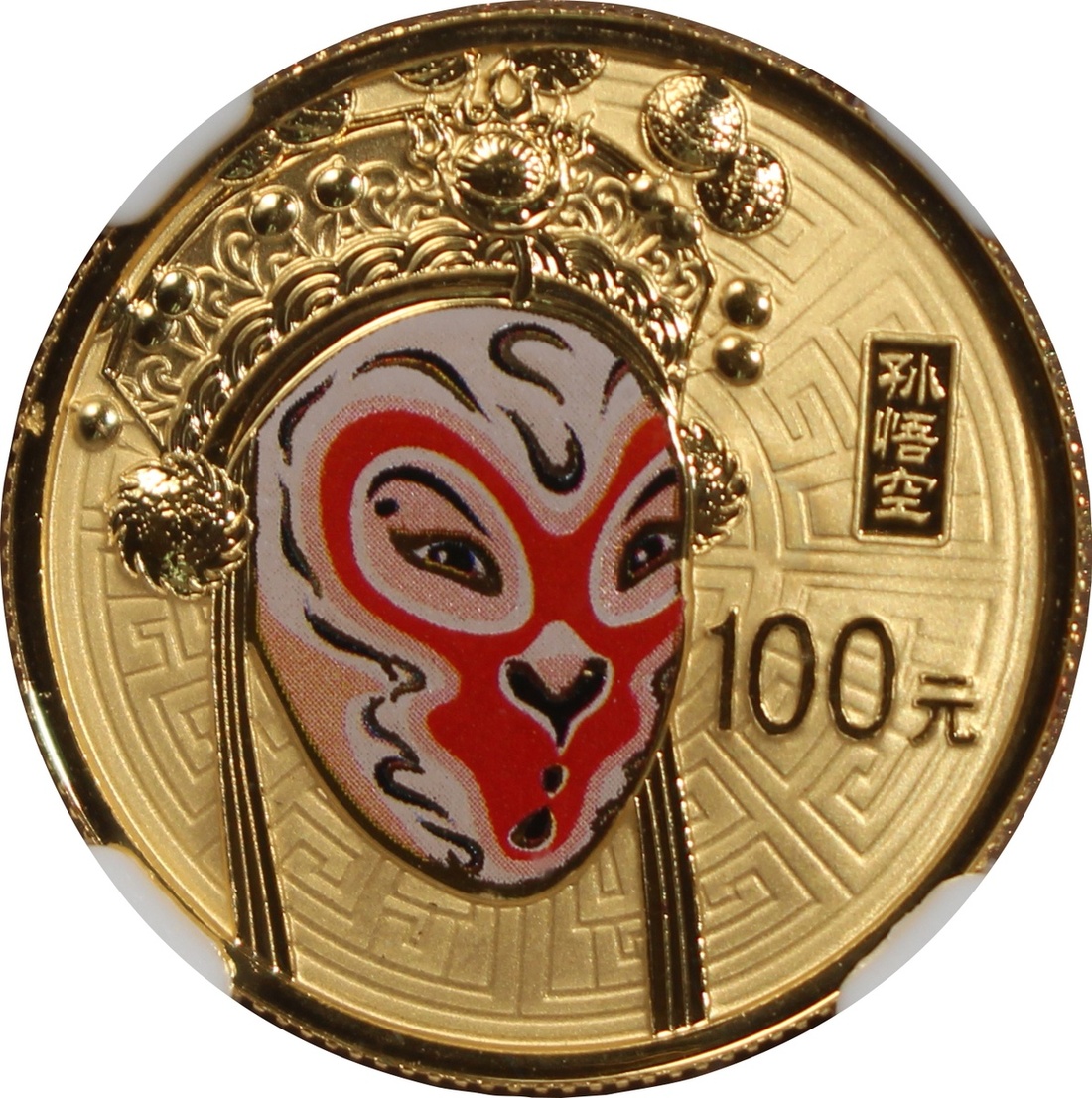 2012年中國京劇藝術第三組精鑄金銀幣,包括10元銀幣「 陶洪」及「張飛」及100元金幣「孫悟空」,銀幣各重1盎司,金幣重0.25盎司,均評NGC PF69 Ultra Cameo,附原盒及證書