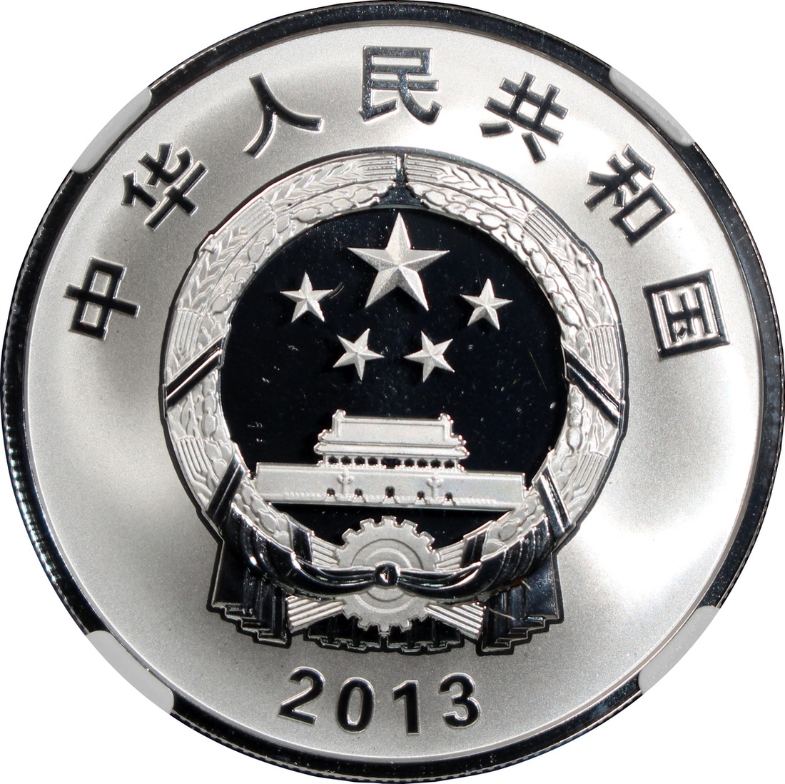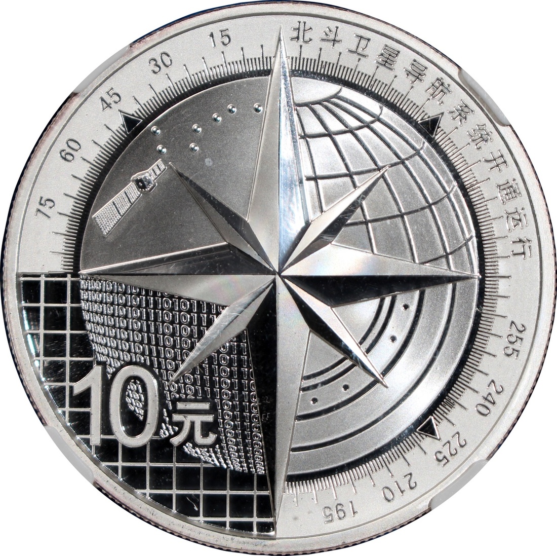 2013年中國北斗導航系統開通運行精鑄金銀幣,包括10元銀幣及100元金幣,銀幣重1盎司,金幣重0.25盎司,均評NGC PF69 Ultra Cameo,附原盒及證書