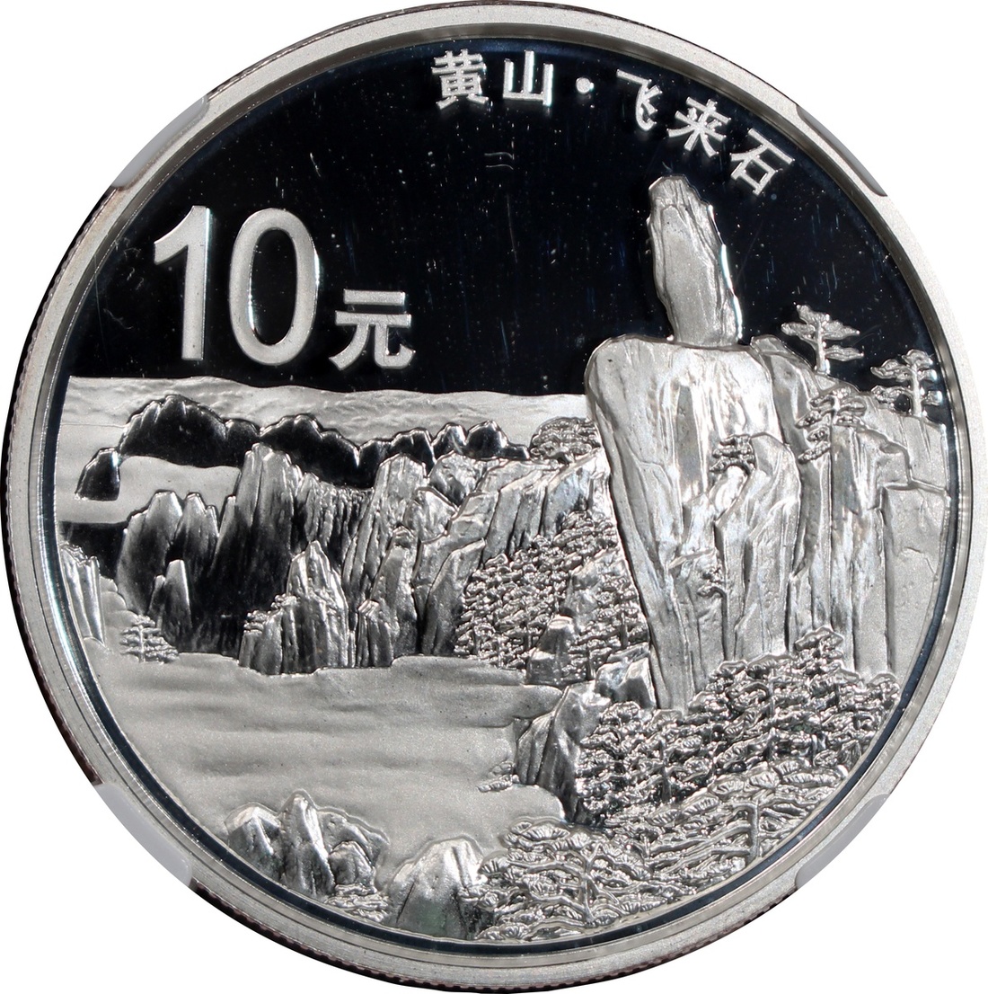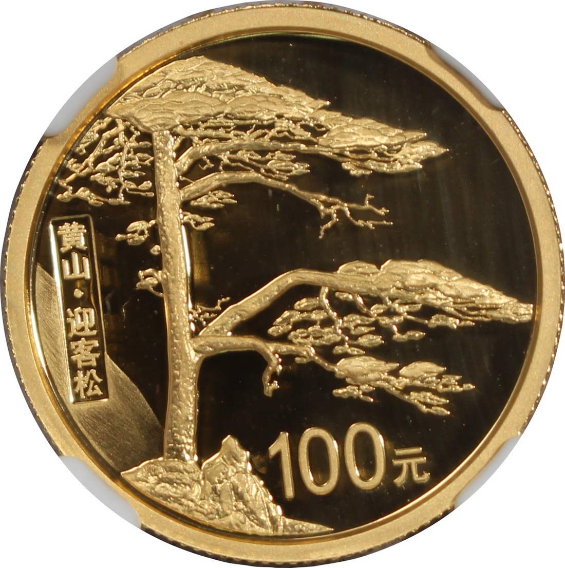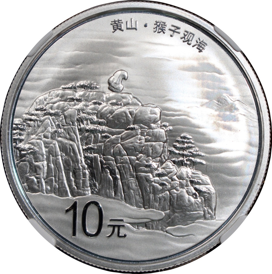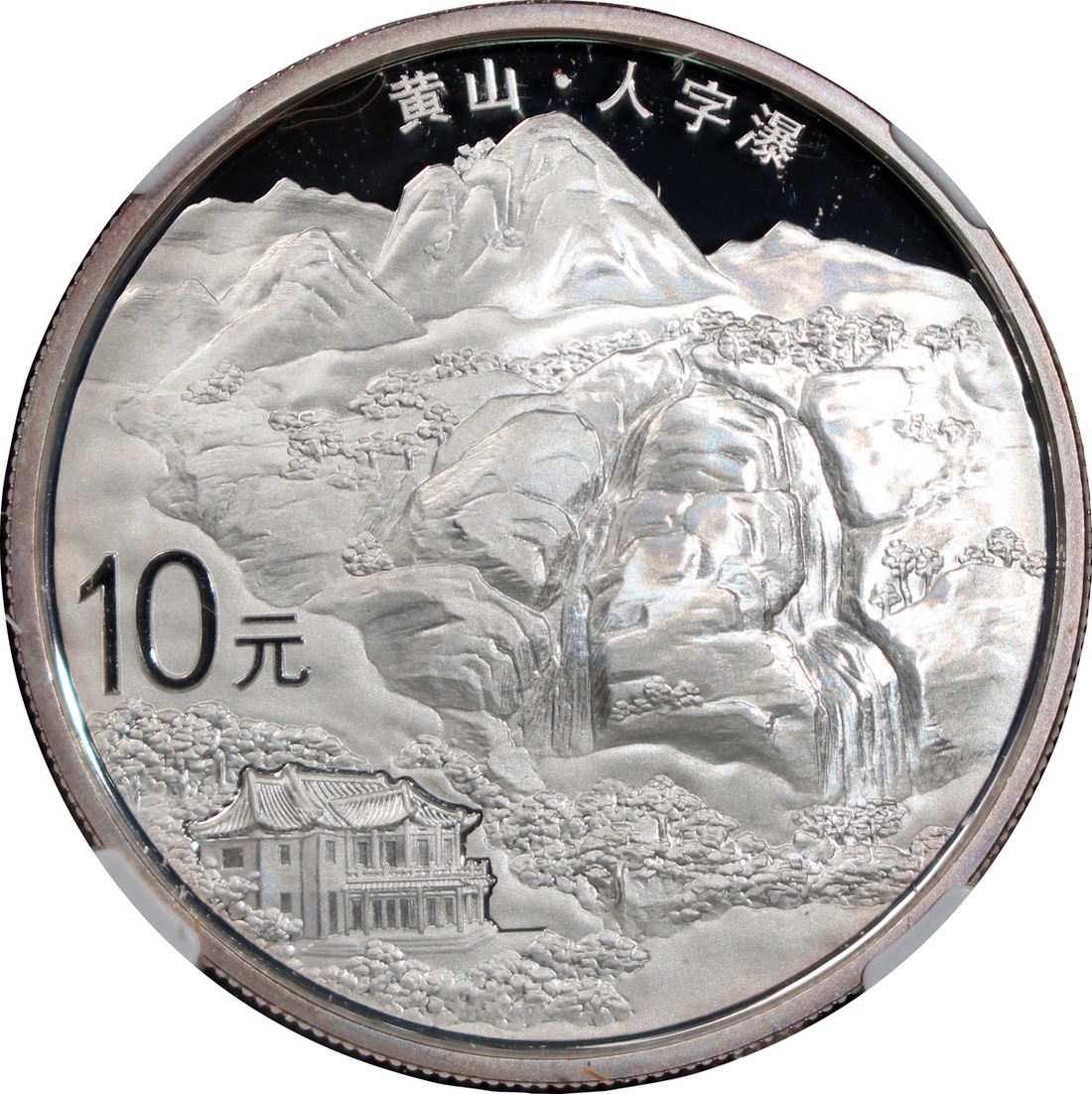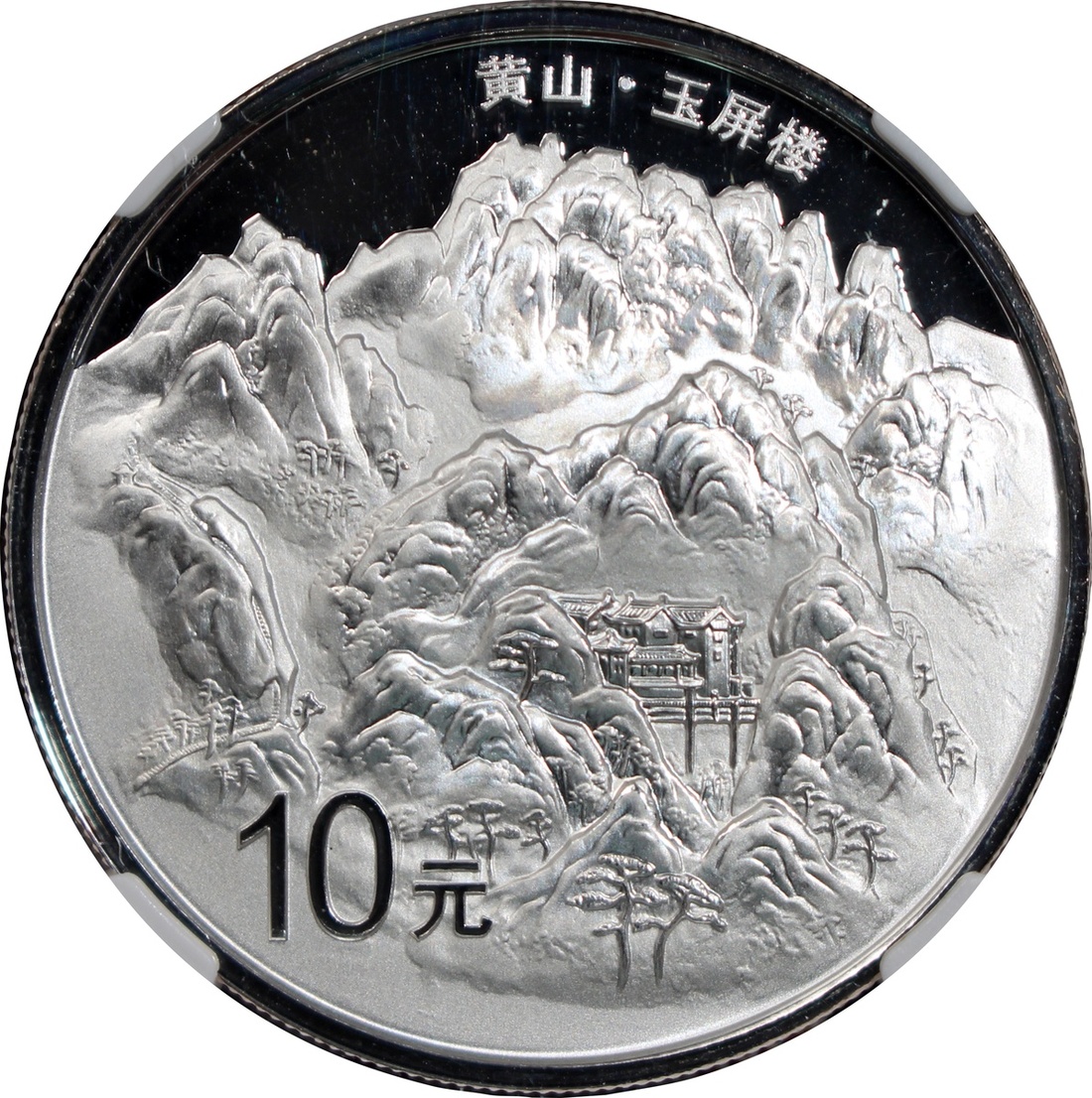 2013年世界遺產黃山精鑄金銀幣,包括10元銀幣「玉屏樓 」、「人字瀑」、「飛來石」、「猴子觀海」及100元金幣「黃山迎客松」,銀幣各重1盎司,金幣重0.25盎司,銀幣評NGC PF70,70,70及69 Ultra Cameo,金幣評PF70 Ultra Cameo,附原盒及證書