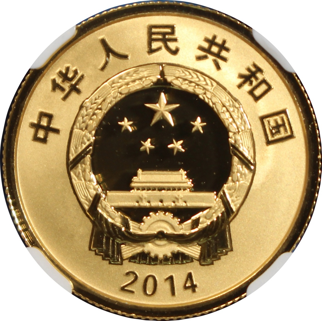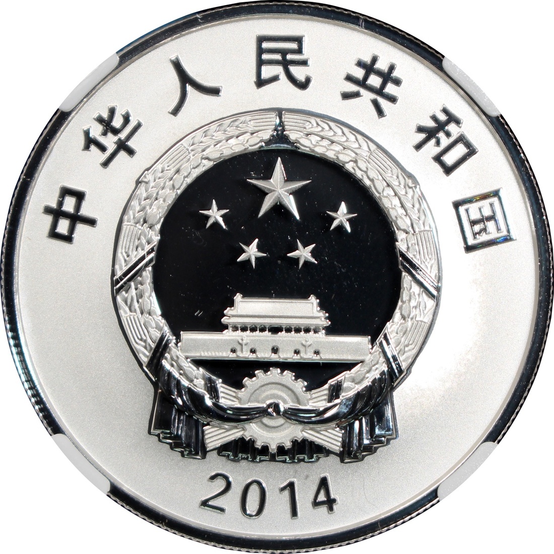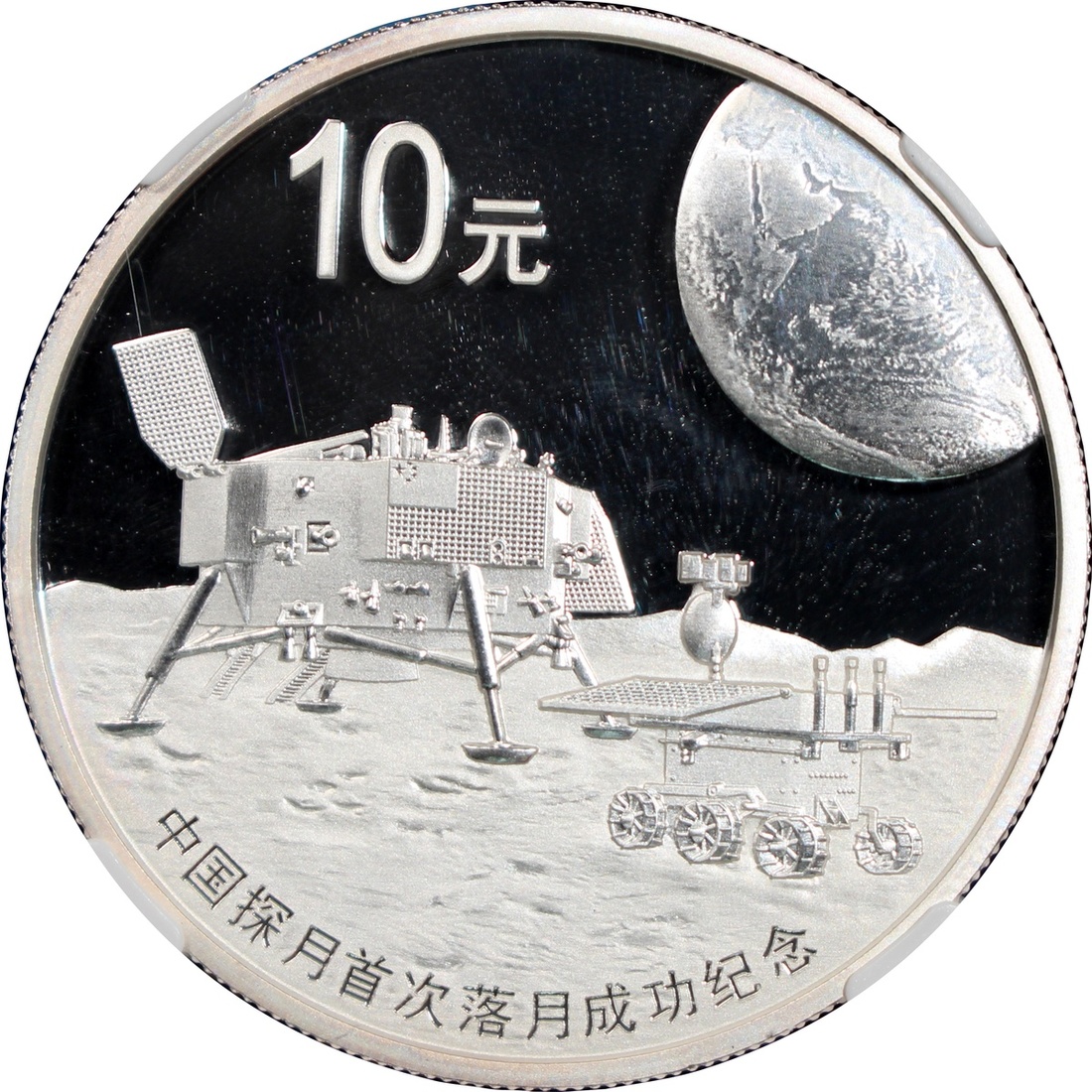 2014年中國探月首次落月成功精鑄金銀幣,包括10元銀幣及100元金幣,銀幣重1盎司,金幣重0.25盎司,銀幣評 NGC PF69 Ultra Cameo,金幣評PF70 Ultra Cameo,附原盒及證書
