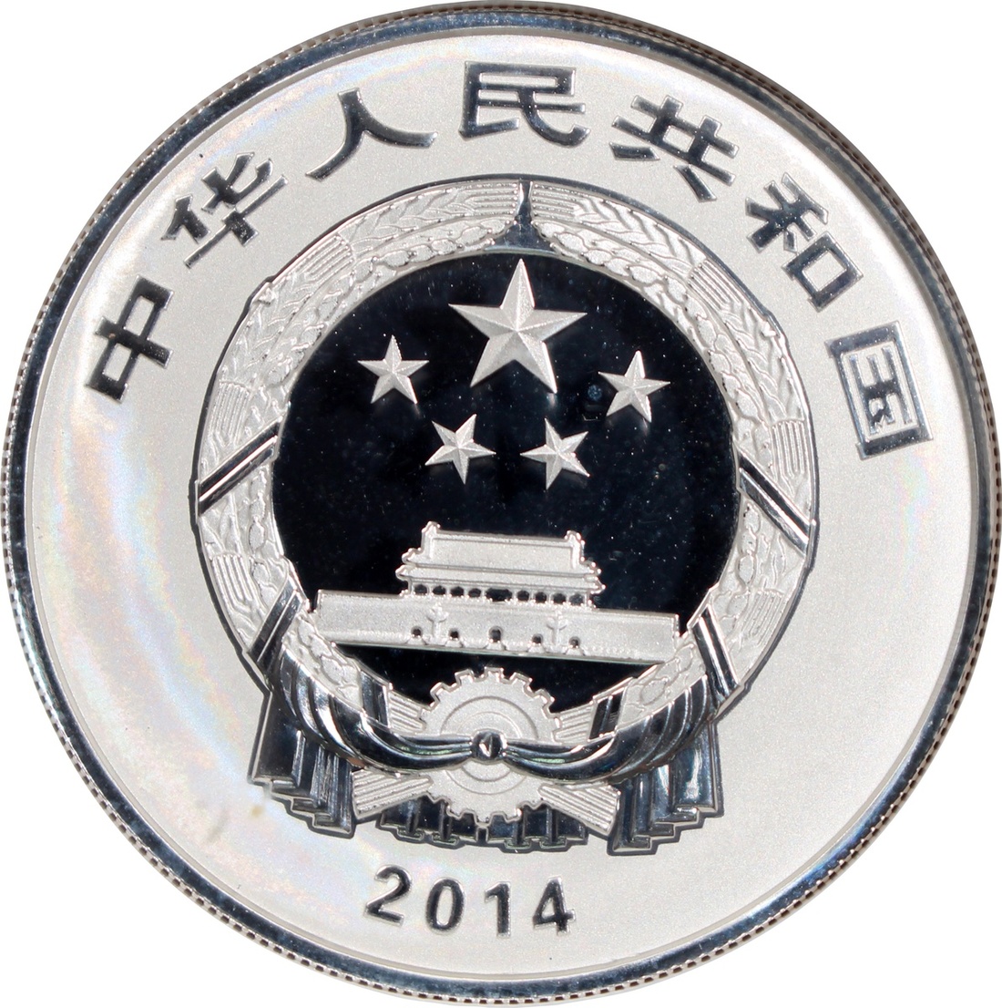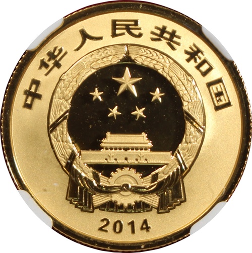 2014年佛教聖地第三組峨眉山精鑄金銀幣,包括20元加厚銀幣「萬年寺」及100元金幣「普賢菩薩」,銀幣重2盎司,金幣重0.25盎司,銀幣評NGC PF69 Ultra Cameo,金幣評PF70 Ultra Cameo,附原盒及證書