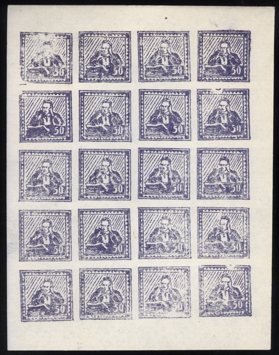 1949 Worker desgin $50 blue in sheet of 20, imperf., fine. Yang NW103
