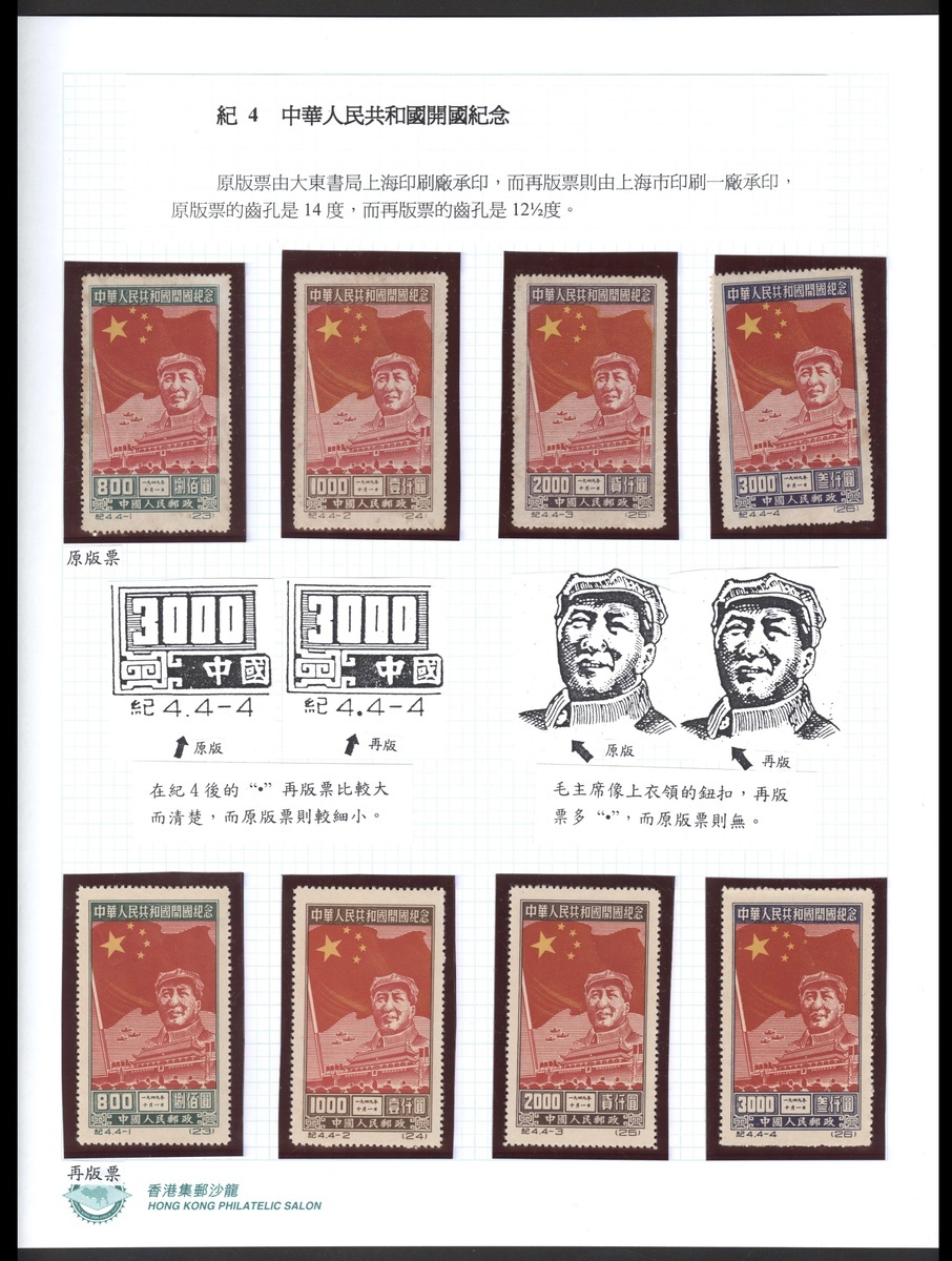 1950年紀東4開國紀念東北貼用原再版新票各一套,票面顏色鮮豔,齒孔完整,附原藏家參展貼票,上中品