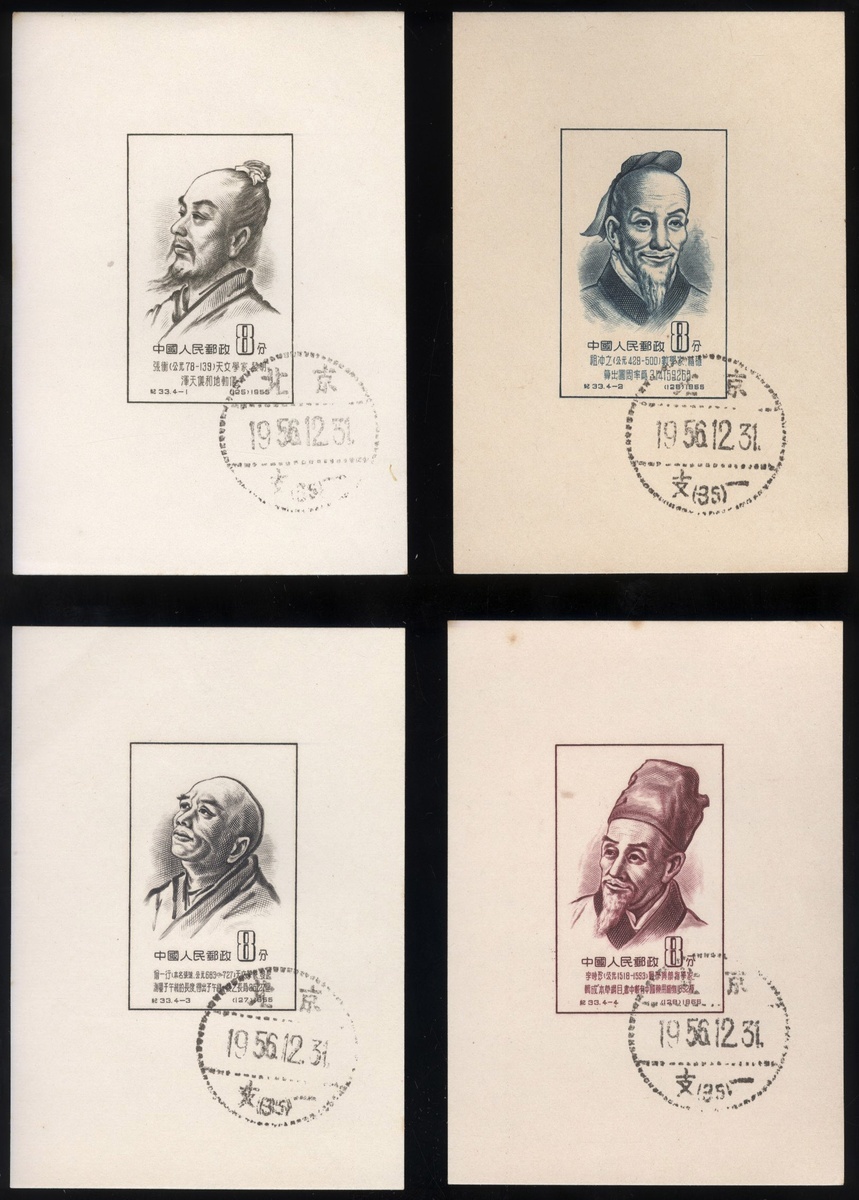 1955 (25 Aug.) Scientist of Ancient China (1st Series) 8f. complete set of four (5 Sets) (C33), slightly toned with toned spots. Yang C125-C128