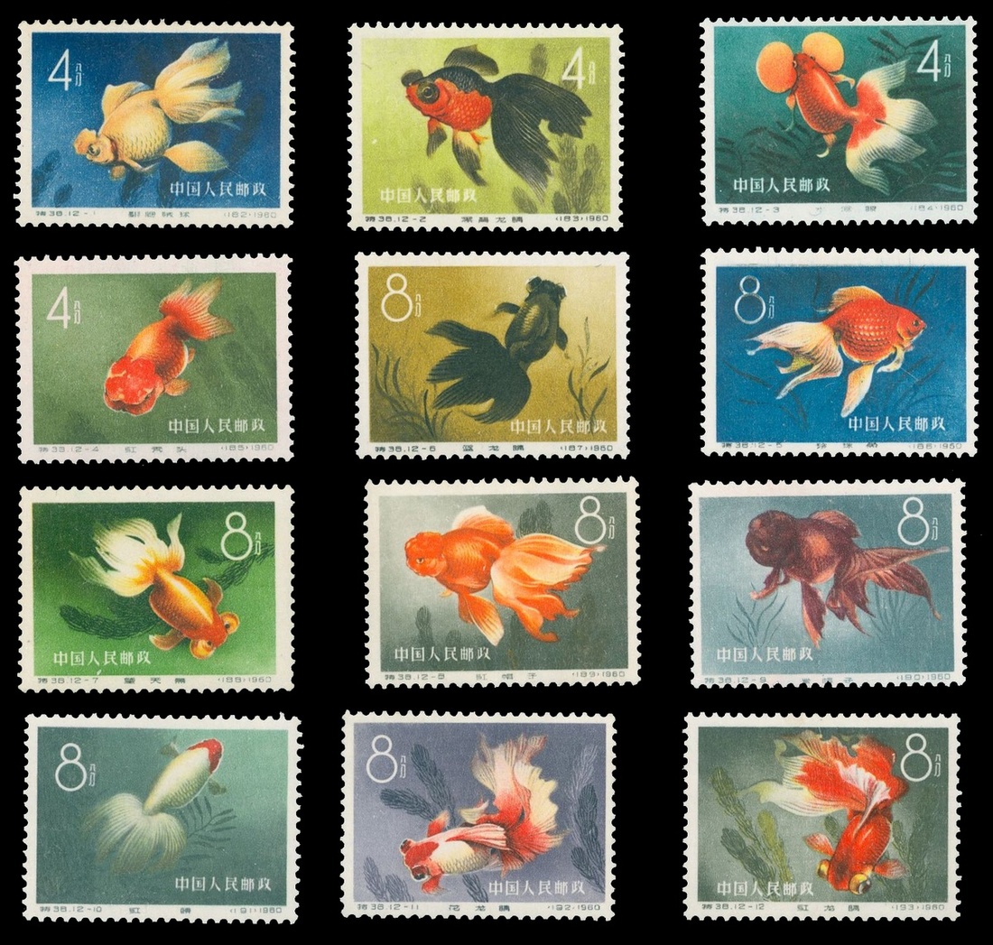 1960年特38金魚新票1套,票面顏色鮮豔,齒孔完整,原膠,膠色一致且水潤,品相極佳