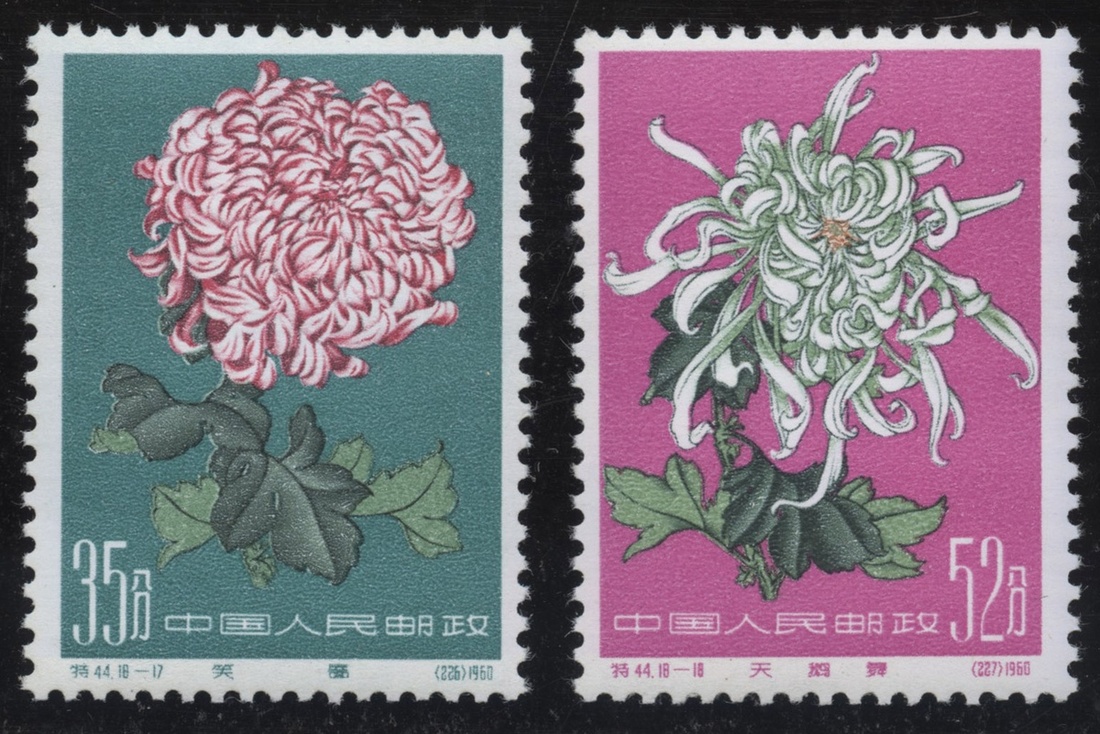 1960年特44菊花新票1套,票面顏色鮮豔,齒孔完整,圖案居中,原膠,膠色一致水潤,品相佳