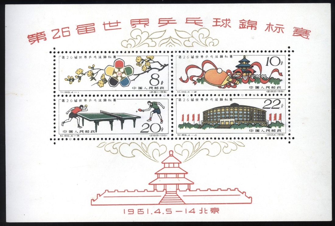 1961 (5 Apr.) 26th World Table tennis Championships miniature sheet (C86MS), slightly toned, fine. Yang C86MS