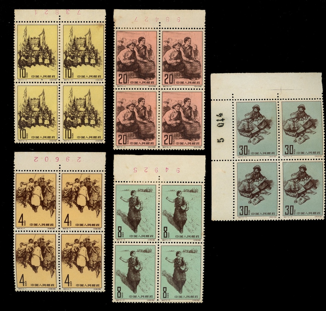 1961 (20 Nov.) S47 New Birth of the Tibetan People set of five, block of four with margin, unused without gum, fine.