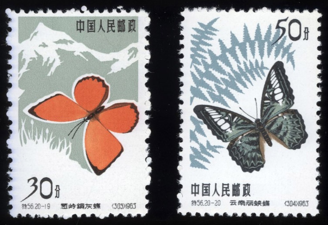 1963年特56蝴蝶新票1套,票面顏色鮮豔,齒孔完整,紙質白淨,品相佳