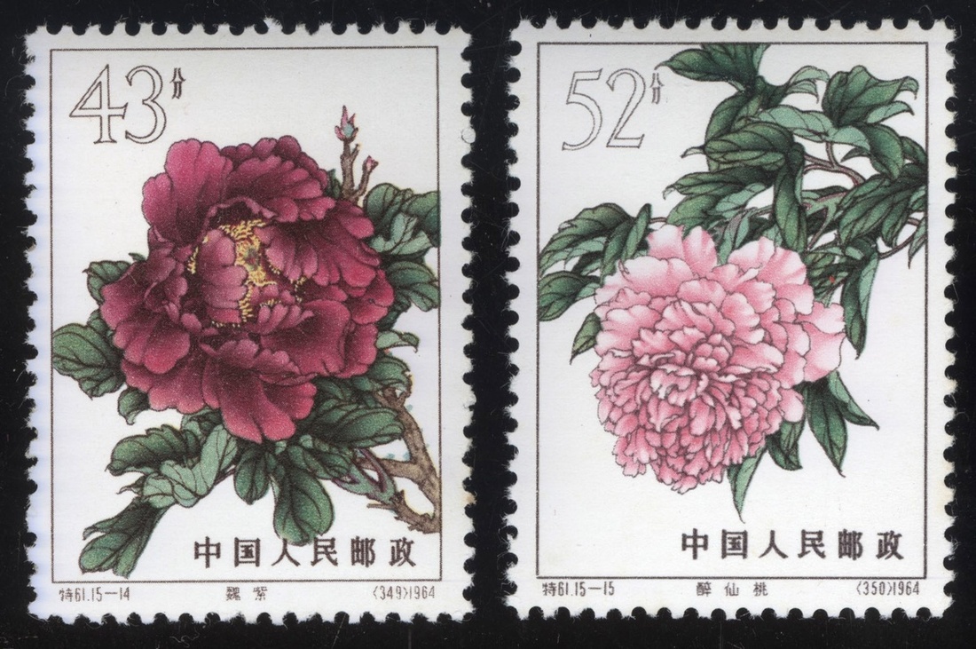 1964 (5 Aug.) Chinese Peonies (S61) 4f. to 52f. complete set of fifteen, some are slightly toned otherwise fine. Yang S337-S350