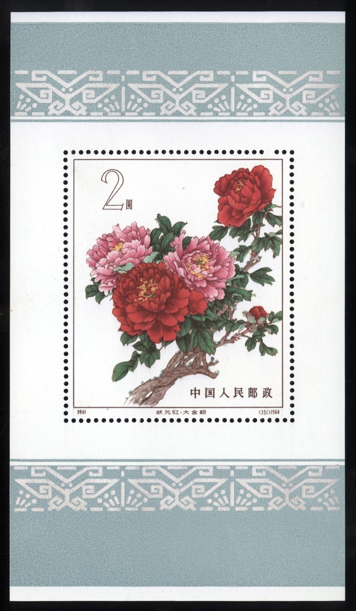 1964 (5 Aug.) Chinese Peonies miniature sheet (S61MS), very fine and fresh. Yang S61MS