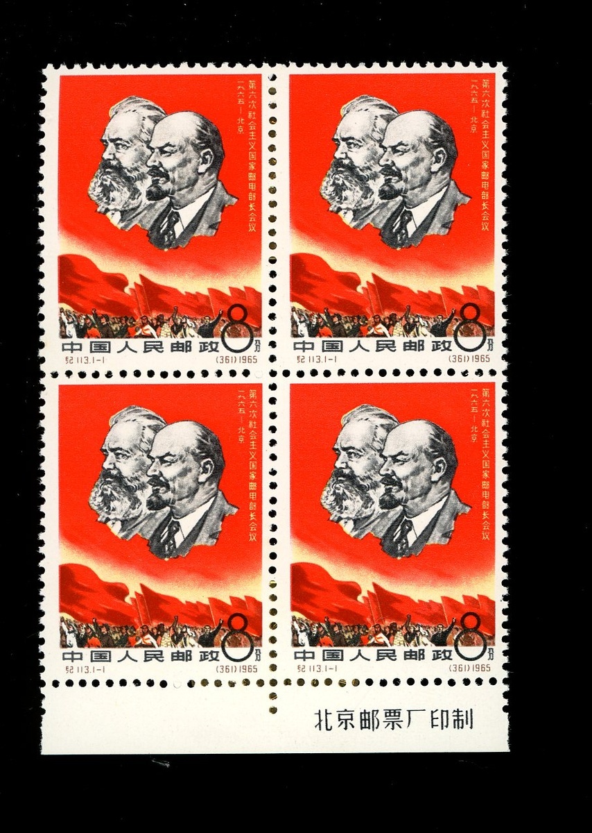 1965年紀113郵電部長會議新票四方連1套,帶下廠銘邊紙,票面顏色鮮豔,齒孔完整,原膠,品相佳
