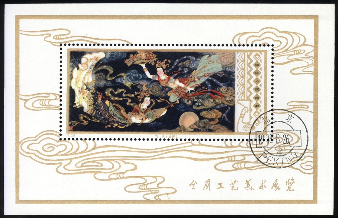 1978年T29M工藝美術小型張蓋銷1枚,票面顏色鮮豔,金粉閃亮,四角尖,原膠,品相佳