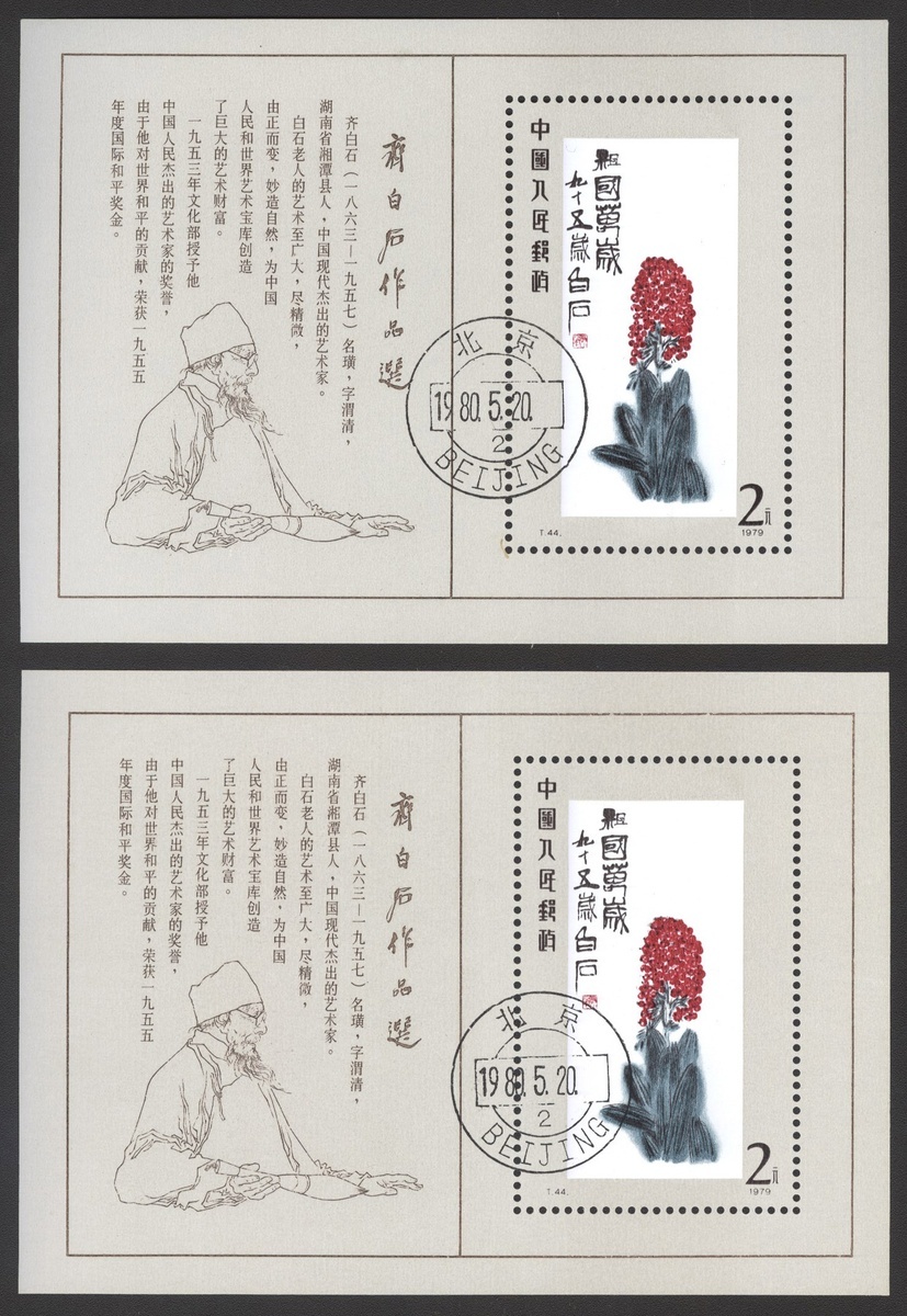 1980 (14-20 May) Selected Paintings of Qi Baishi (T44MS) $2 miniature sheet (2) C.T.O., very fine. Yang T44MS