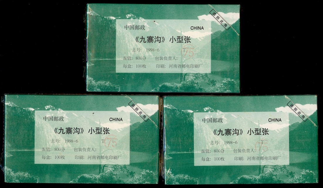 1998 (26 Mar.) (98-6M) Jiuzhaigou Valley Souvenir Sheet in three original packaging. (each packaging with 100 sheets)