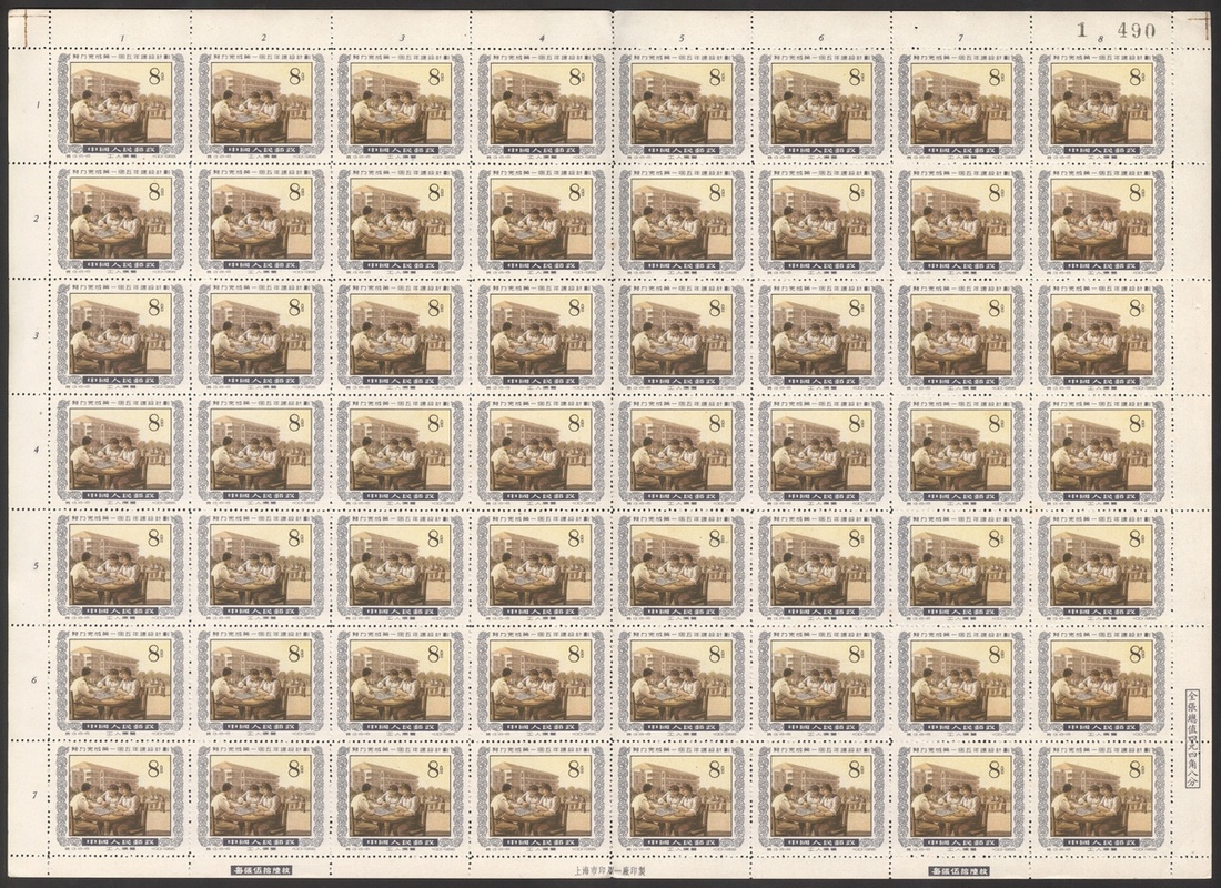 1955年特13一五計劃新票56枚全張1套,折版,邊紙完整,票面顏色鮮豔,個別微黃,上中品