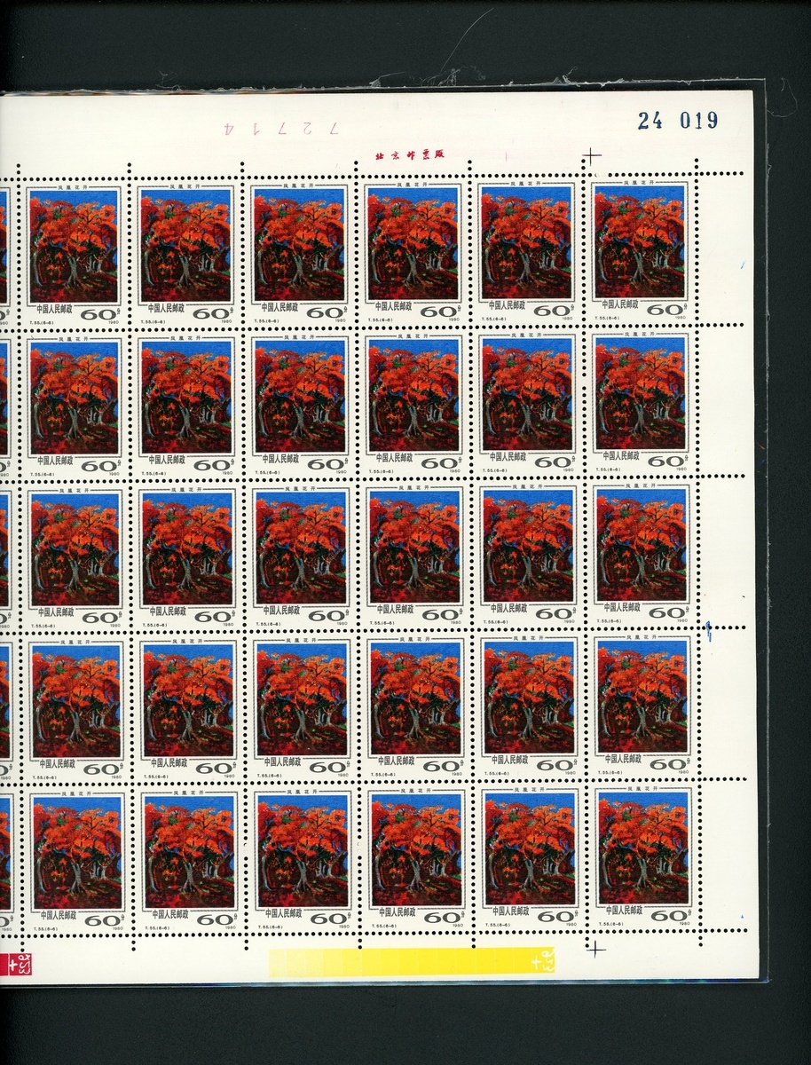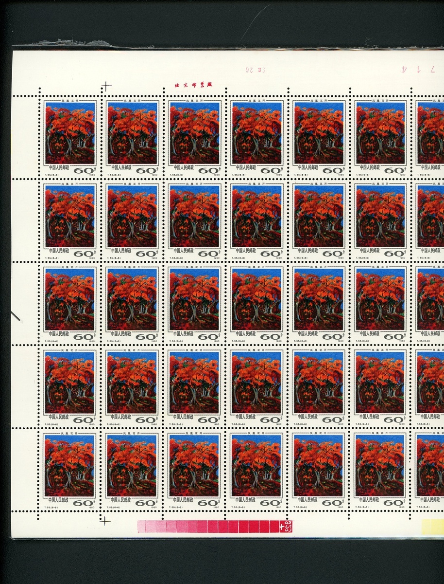 1981年T55西雙版納新票50枚全張1套,票面顏色鮮豔,邊紙完整,原膠,部分背膠微黃,整體上中品