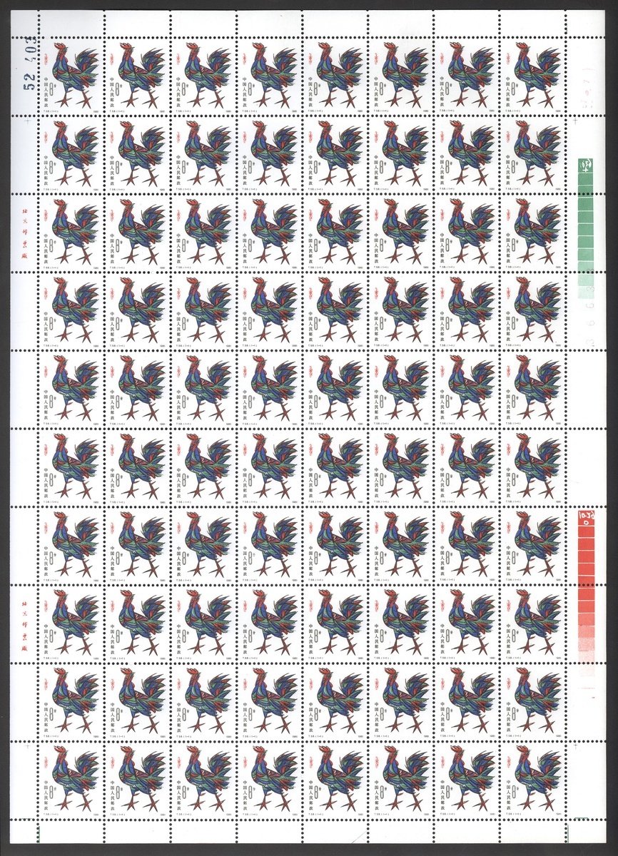 1981 (5 Jan.) T58 Year of the Cock, sheet of eighty, unmounted mint, fine.
