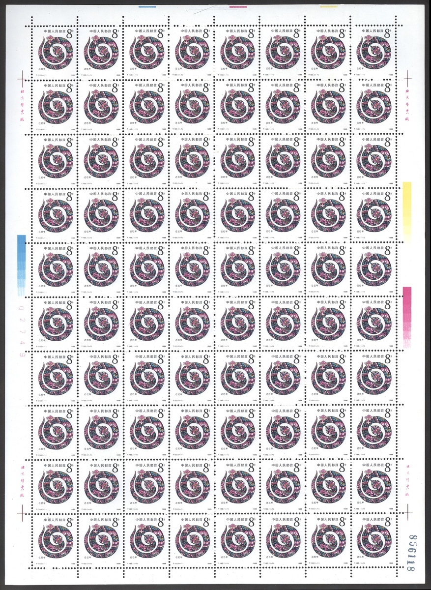 1989 (5 Jan.) T133 Year of the Snake, sheet of eighty (10), unmounted mint, fine.