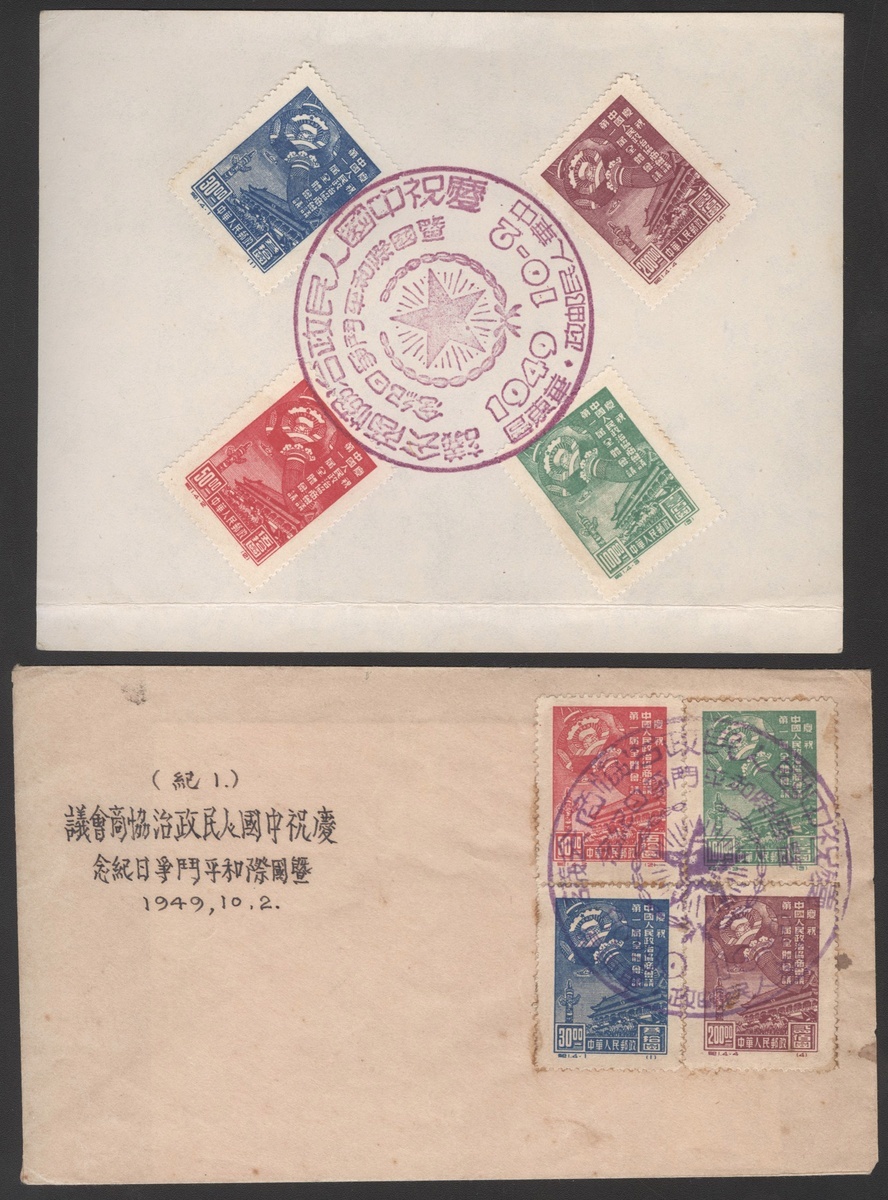 1949 (8 Oct.) First Session of the Chinese People's Political Conference (C1) first day cover with commemorating cancellation, fine. Yang C1-C4