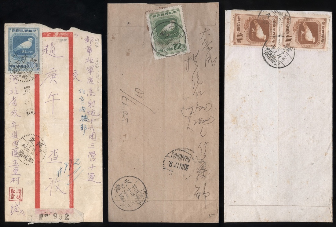 1950 a group of three covers bearing Peace Campaign (C4) different franking and cancellation, please review.