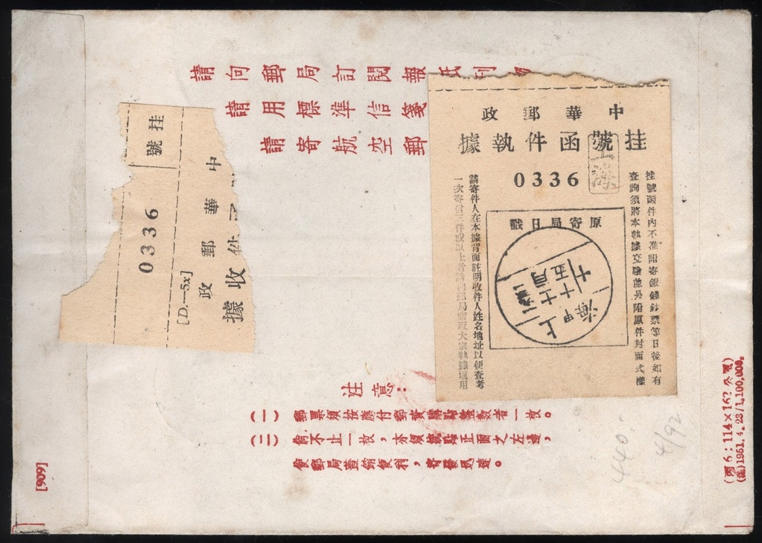 1951年上海掛號寄本埠紀12郵票首日封1件,貼紀12全套,銷上海12月15日戳,有同日到達戳,附原套掛號執據,保存完好