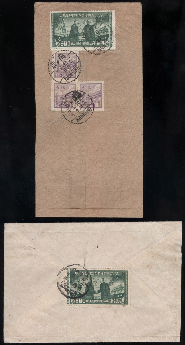 1951 a group of two covers bearing Sino-Soviet Treaty (C8) including (3 Jan) cover to Hong Kong bearing $800; (2 Apr.) airmail to Tihwa bearing $800 and Tien An Min 1st print $1000 (3), fine. Yang C52, R5