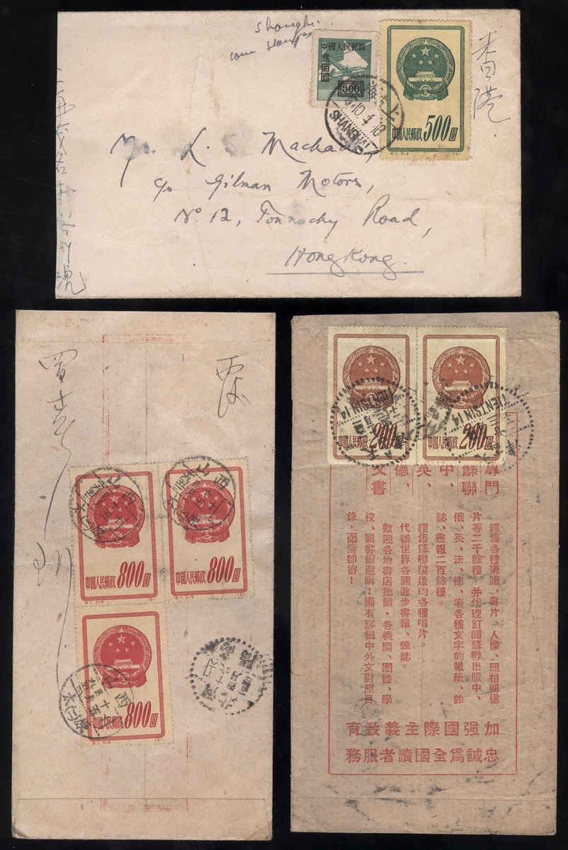 1951-52年貼特1郵票實寄封3件,分貼200元,800元,500元不同面值,包括本埠平信,外埠平信,及快信郵資,分別銷天津,上海,太原郵戳,整體郵戳清晰,保存完好