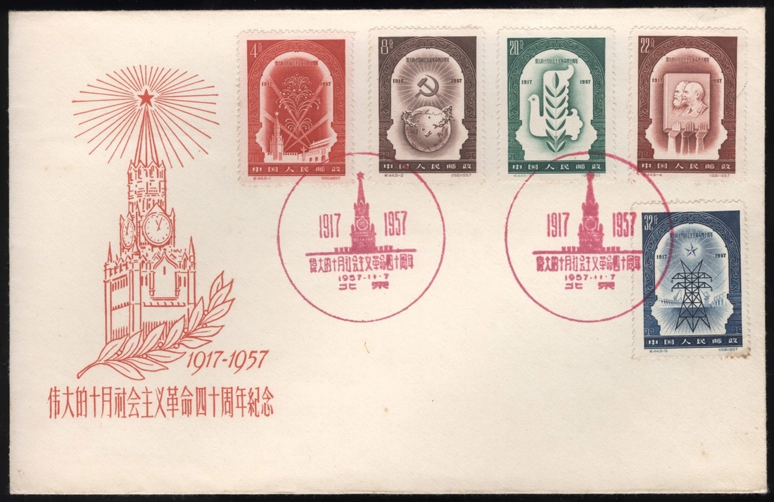 1957 (7 Nov.) 40th Anniv. of Russian Revolution (C44) first day cover, fine. Yang C155-C159