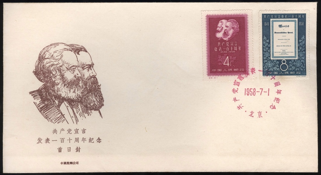 1958 (1 Jul.) 110th Anniv. of "Communist Mannifesto" (C51) first day cover, fine. Yang C173-C174