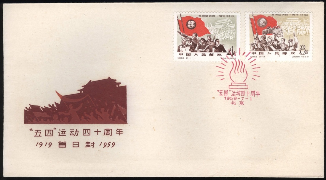 1959 (1 Jul.) 40th Anniv. of "May 4th" Student's Rising (C62) first day cover, fine. Yang C202-C203