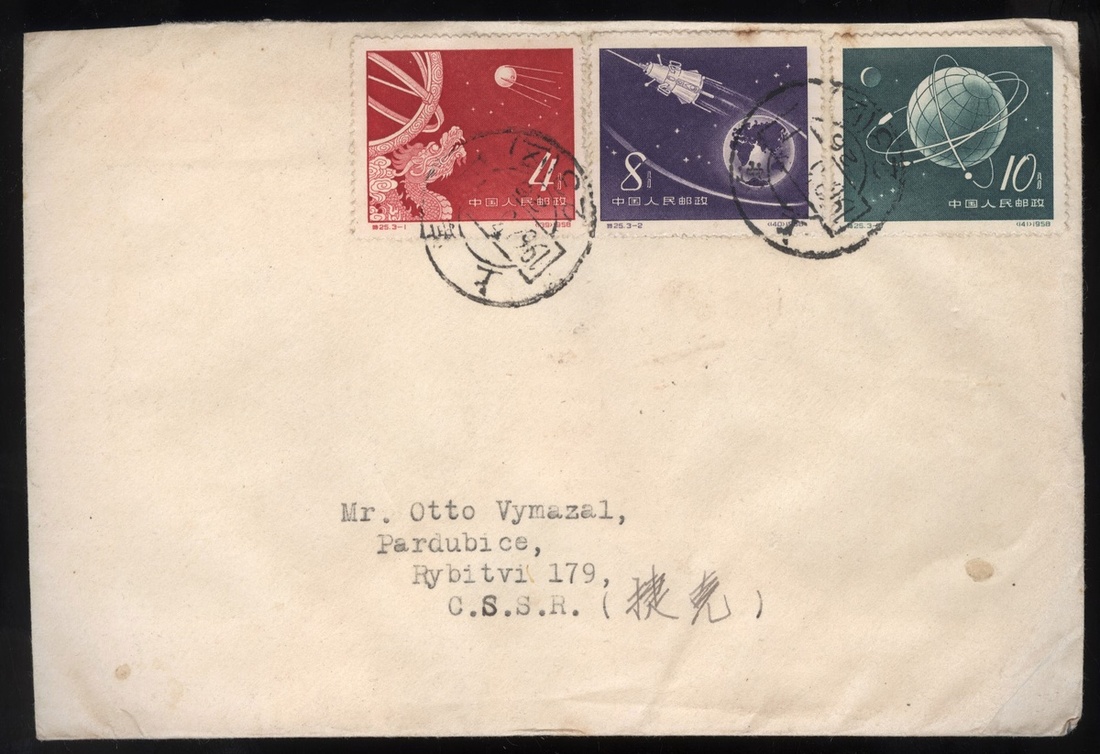1962 (1 Mar.) envelope to Czech bearing 1958 Russian Sputnil Commemoration (S25) 4f. to 10f. complete set of three cancelled by Shanghai c.d.s., fine. Yang S139-S141