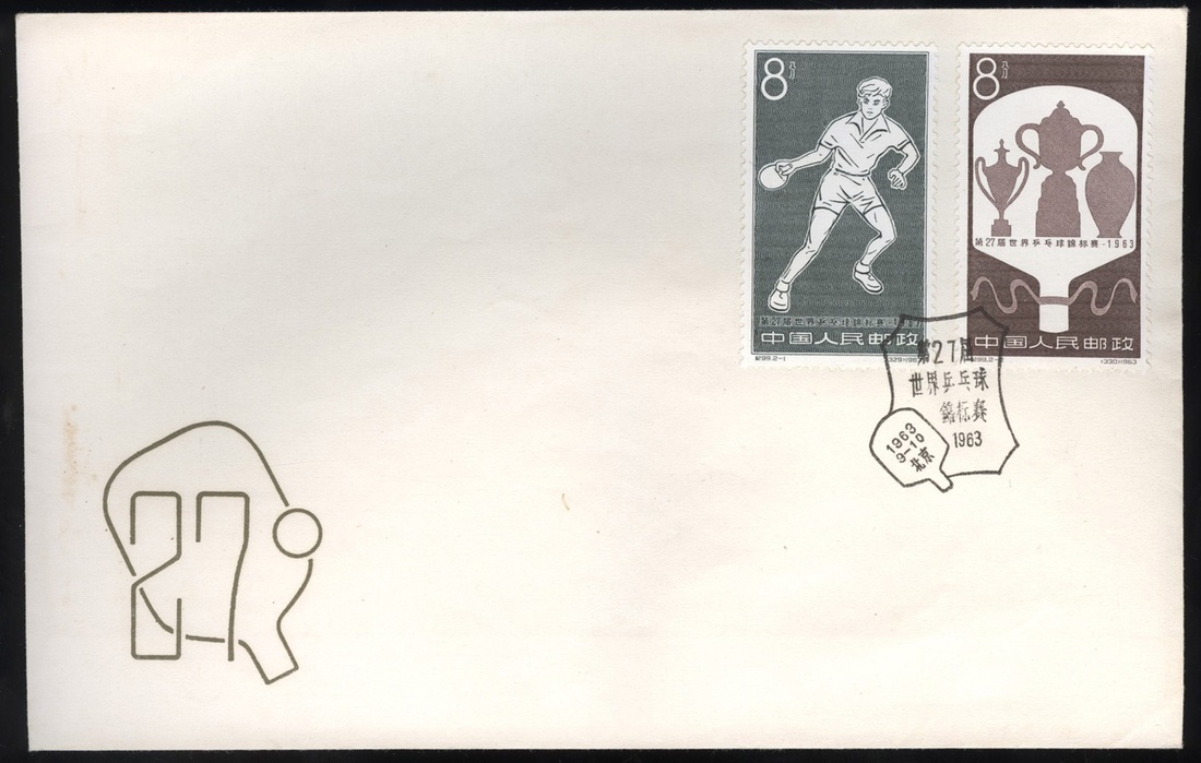 1963年中國集郵總公司發行紀99世乒賽首日封1件,貼全套郵票,銷首日戳,未實寄,保存完好