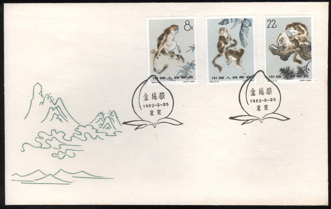 1963 (25 Sep.) Golden-haired Monkeys (S60) first day cover, fine. yang S333-S335