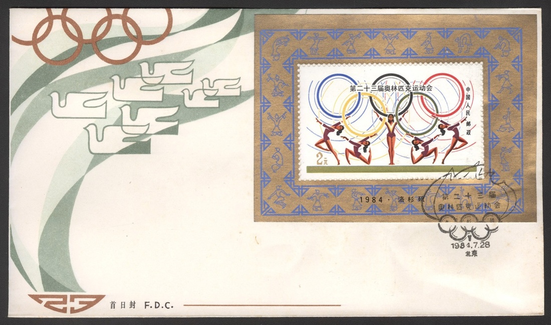 1984 (28 Jul.) First day cover bearing The 23rd Olympic Games miniature sheet (J103MS) with commemorating h.s. (10), unaddressed, slightly toned. Yang J103MS