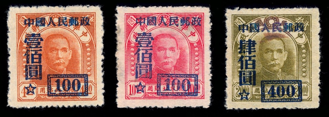 1950年6月中央一版及二版限東北貼用孫像加蓋 "中國人民郵政" 改值票全組十八枚新票,上品