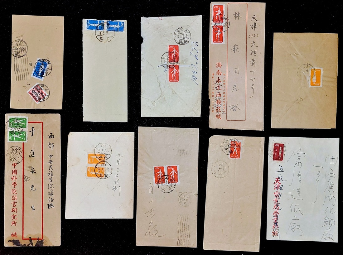 1952年貼特2郵票實寄封10件,分別貼不同票,包括外部平信及本埠平信郵資,分別銷上海,北京,濟南,重慶,鄖縣,徐州等地日戳,郵戳清晰,保存完好