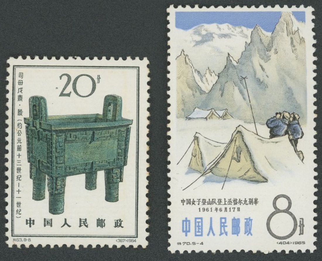 1963-64年新中國成套特字頭新票一組,包括特53舞蹈第二組,特63青銅器,特70登山各一套,票面顏色鮮豔,齒孔完整,原膠,各別背膠泛黃,上中品