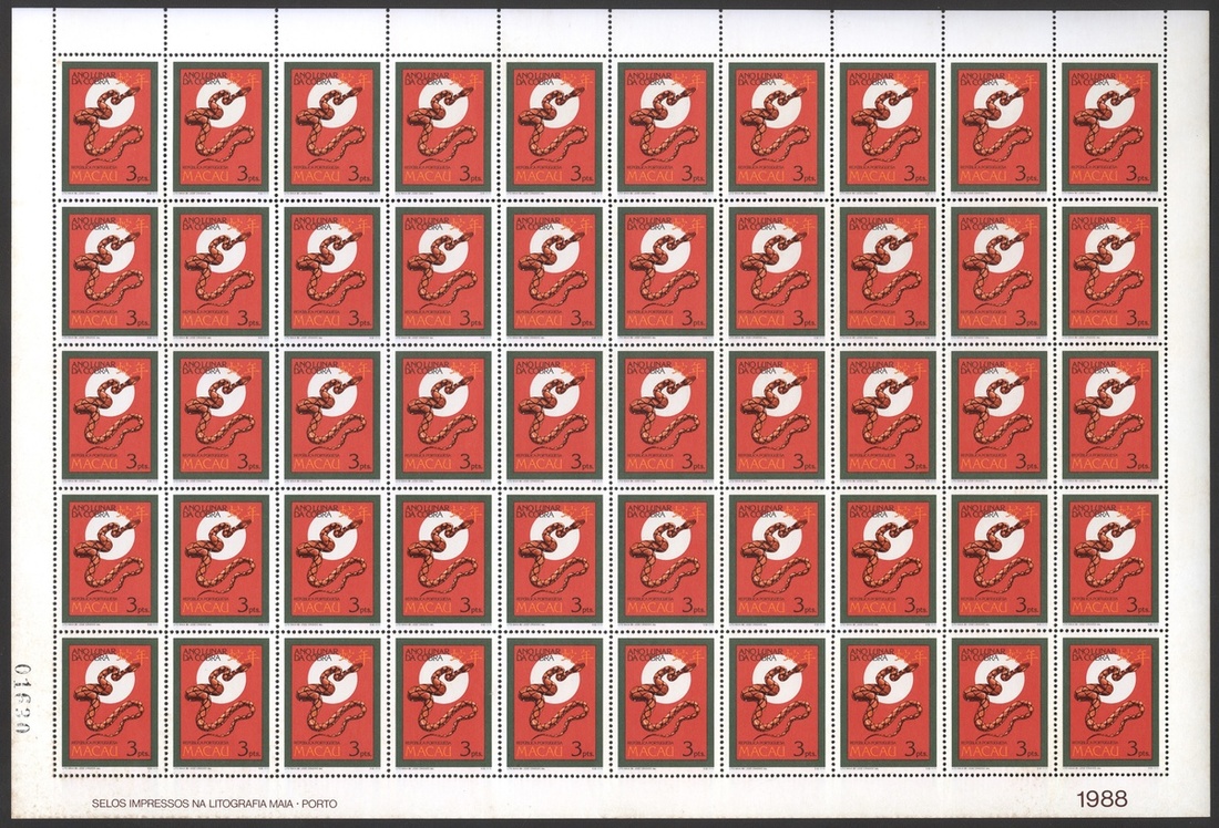 1989 (20 Jan.) Lunar Year of the Snake, 3p. sheet of fifty, unmounted mint, fine.