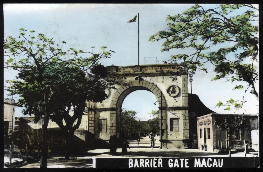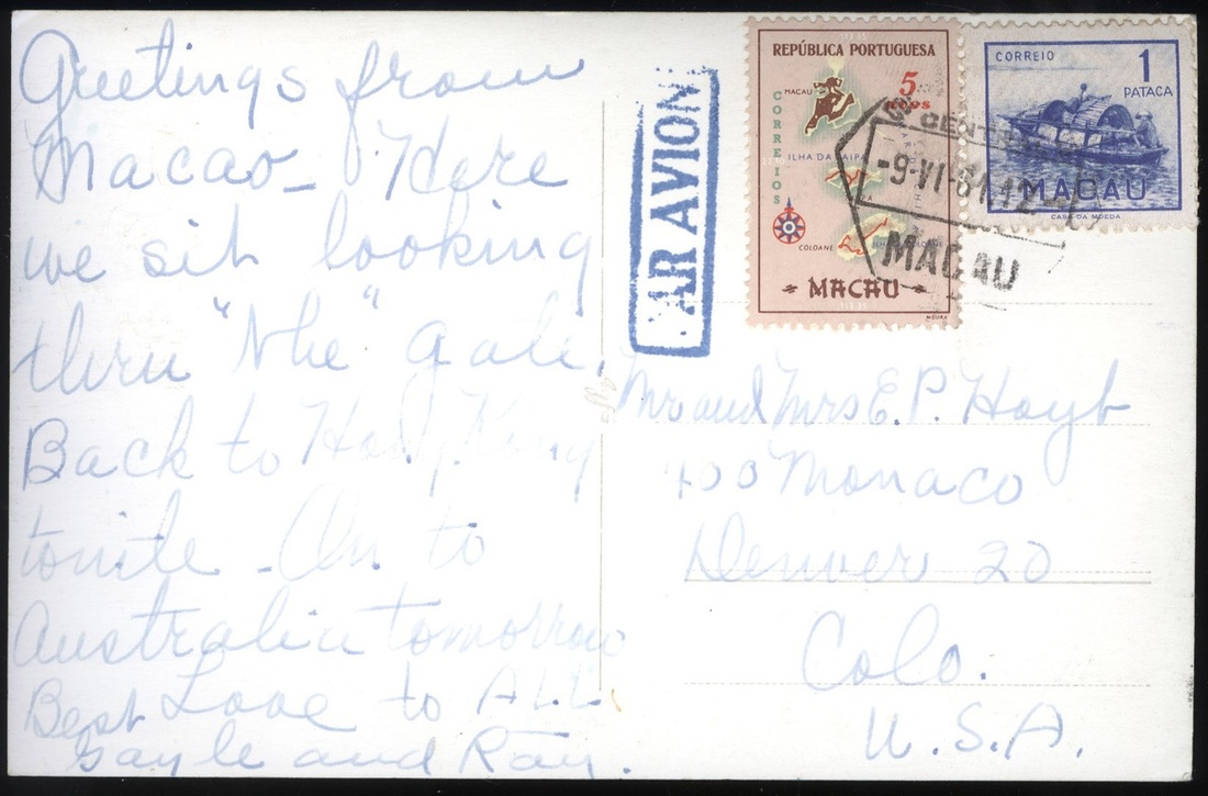 1961 (9 Jun.) A Barrier Gate Macau picture postcard to U.S.A. bearing 5a. and 1p. tied Macau c.d.s., very fine.