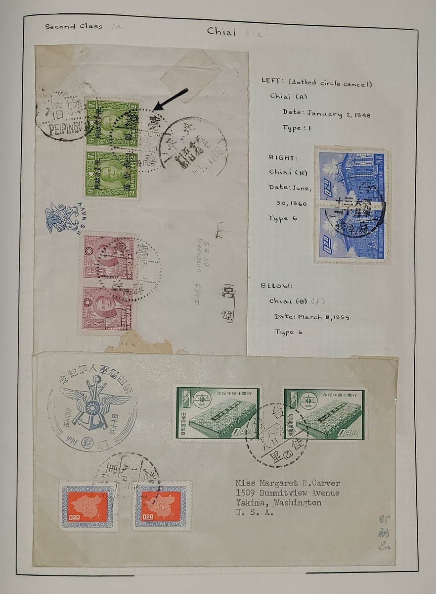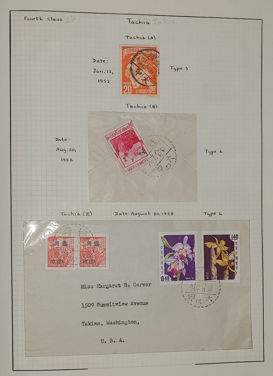 1945-60 a collection of postal cancellations of Taiwan in three lighthouse albums including covers, pieces and used stamps, this collection formed over many years by oversea collector, hundreds of small towns used stationery cards, need to careful inspection.