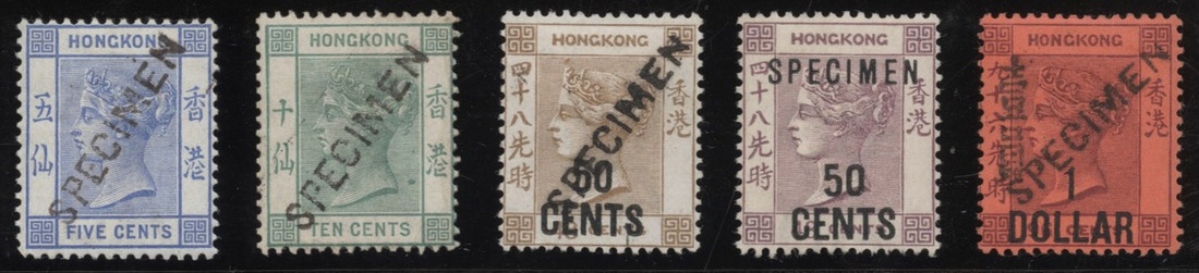 1882-91 overprinted "SPECIMEN" 5c., 10c., 50c. on 48c. two types, and $1 on 96c. with Chinese char. fine.