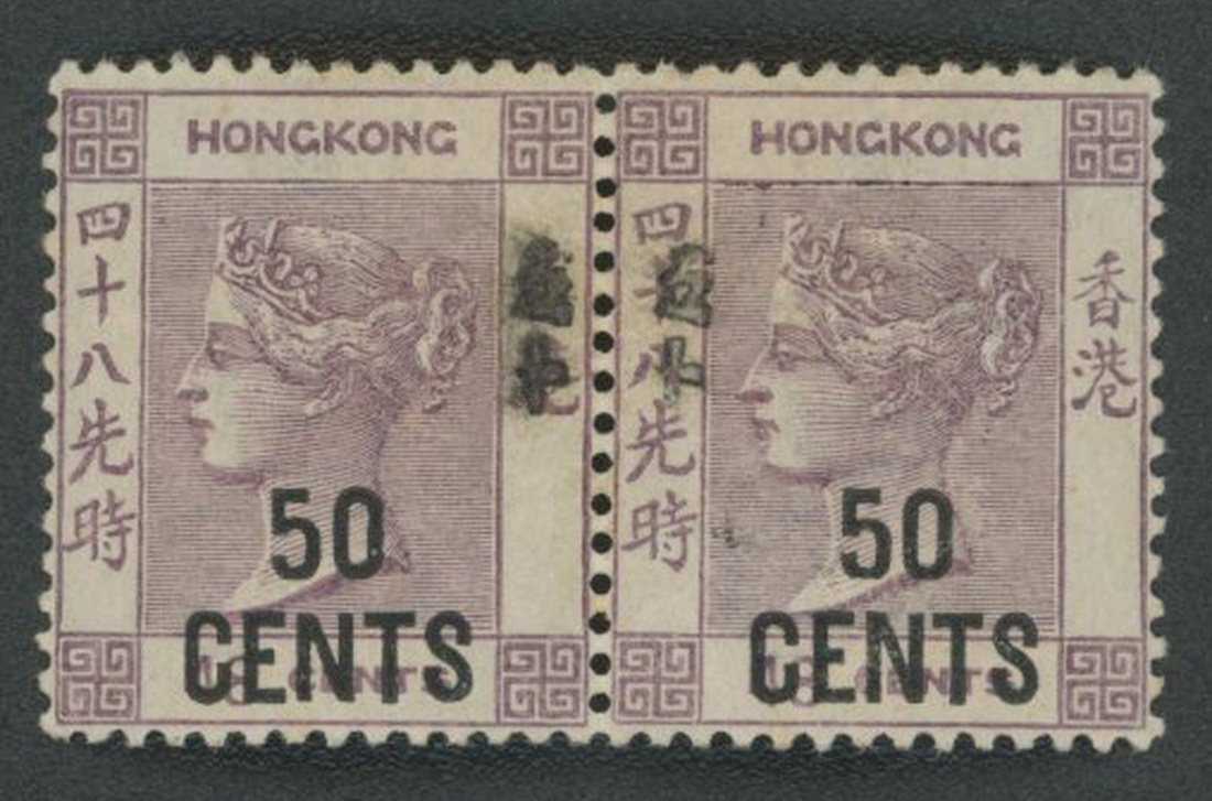 1891 Q.V. the 5th surch. issue, 50c. on 48c. horizontal pair, dull purple, with Chinese surch. at right side variety, very fine, unmounted mint. Yang 46