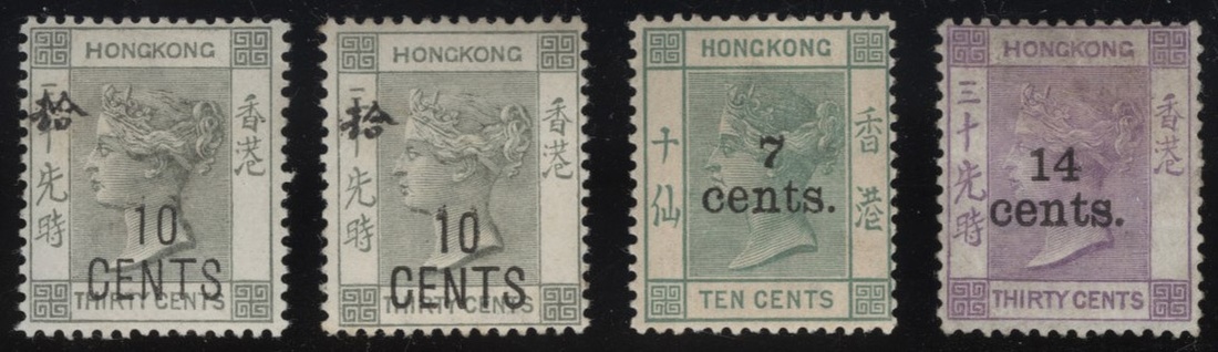 1891 surcharge issue 7c. on 10c. green and 14c. on 30c. mauve, mint, 1898 10c. on 30c. (2) with Chinese char. mint, fine. Yang 48,49,54