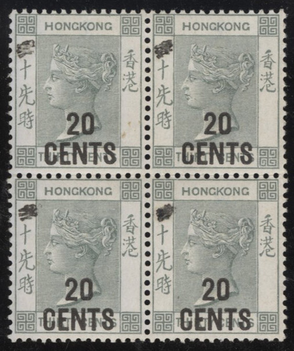 1891 surcharge issue with Chinese char. 20c. on 30c. block of four, unmounted mint, very fine. Chan 45