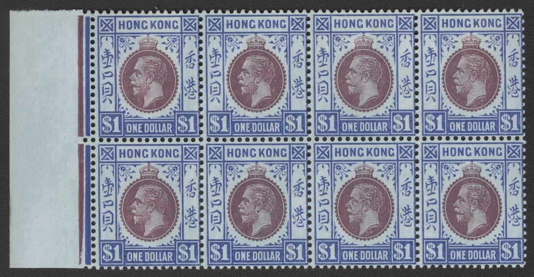 1912-1921 King George V the 1st issue, $1. block of eight with left margin, Inverted wmk