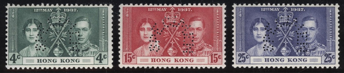 1937 (12 May) Coronation 4c. to 25c. set of three, with perfin "SPECIMEN", unmounted mint, very fine. Yang C3